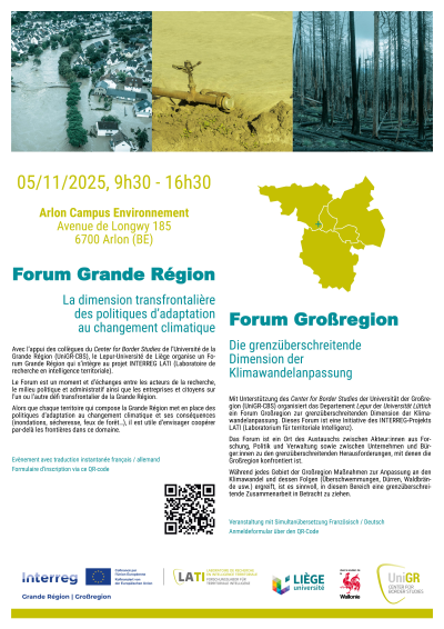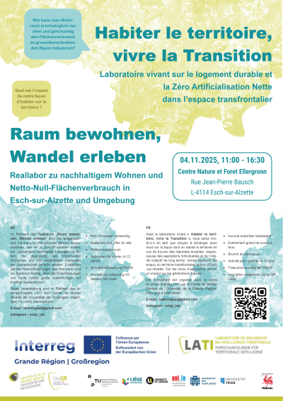 LATI est un projet INTERREG Grande Région porté par le réseau UniGR-CBS, qui explore les transitions territoriales dans les régions frontalières. À travers des ateliers participatifs, des laboratoires vivants et des formations (continues) et une recherche-action interdisciplinaire, LATI mobilise citoyens, chercheurs et décideurs pour expérimenter des approches innovantes d’aménagement du territoire dans la Grande Région.